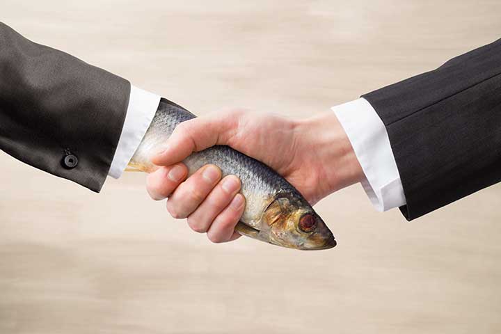 حتما تا‌به‌حال با آن کسانی دست داده‌اید که دست‌شان مثل ماهی لیز می‌خورد یا اصلا آن‌قدر بی‌حال دست می‌دهند که حال شما را هم می‌گیرند! دست‌ دادن در مناسبات کاری اهمیت زیادی دارد. البته توصیه می‌کنیم هنگام دست‌دادن، دست همکارتان را به سمت خود نکشید یا آن‌قدر محکم دست ندهید که استخوان طرف بشکند، اما باید وضعیت خوبی داشته باشید، ارتباط چشمی برقرار کنید، خوب و محکم دست بدهید.
