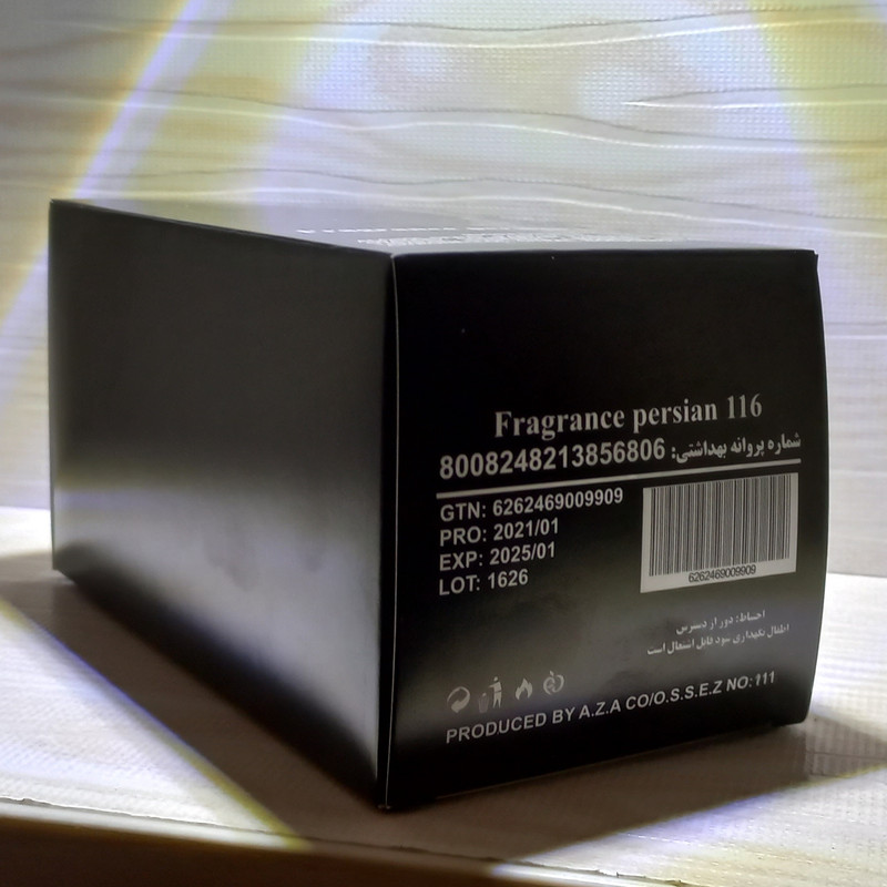 نت میانی: اسطوخودوس،جوز هندی گل شمعدانی، صمغ لامی، علف وتیور و گیاه پاتچولی